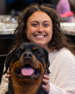 Morgan has one pup named Lula, a 2-year-old Husky and Great Pyrenees mix. Lula gets one of our Woof Complete Mixes as her base, a scoop of pumpkin puree for digestion on top, and finally a sprinkle of locally sourced bee pollen to prevent seasonal allergies.